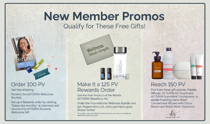 - Order 100 PV on your first order: Get FREE Shipping! Receive a dōTERRA Welcome Booklet. Set up a Rewards Order by clicking "Subscribe Monthly" at checkout and receive the dōTERRA Rewards Welcome Gift!